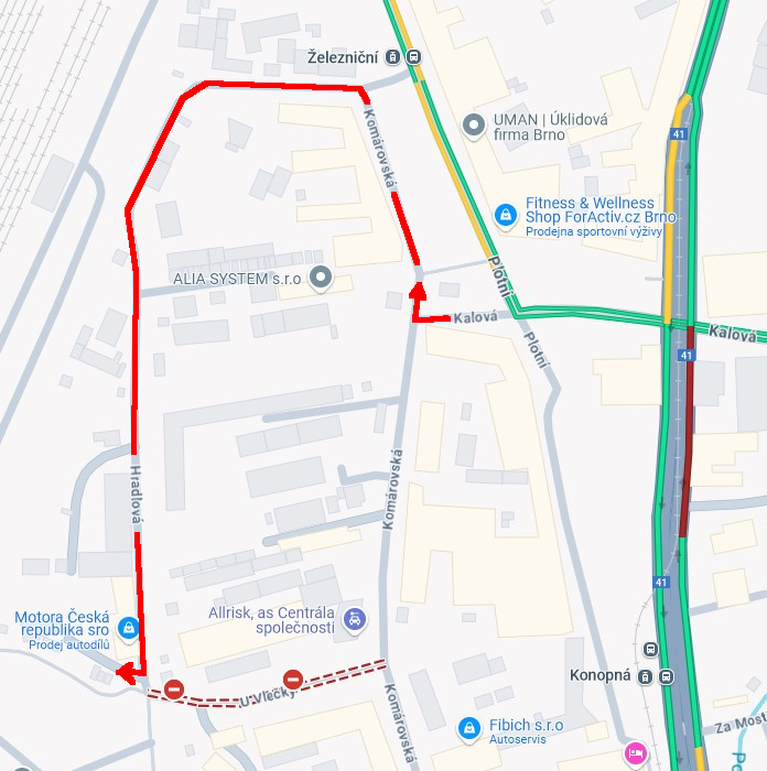 Z důvodu rekonstrukce ulice U vlečky, je pro příjezd nutné použít ulici Hradlová